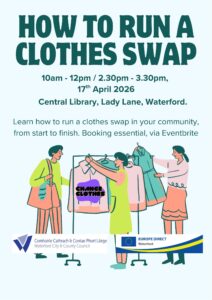2 hour ‘How to run a clothes swap’ workshop with Change Clothes @ 10am Friday 17th April 2026 in Central Library, Lady Lane, Waterford.